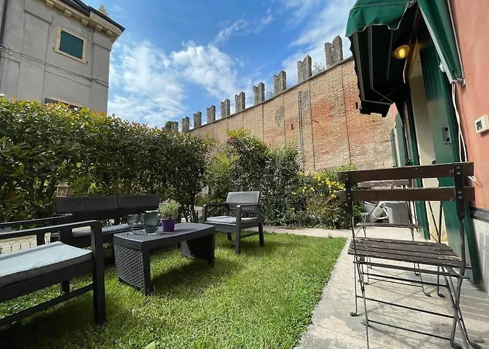 Scaligero-Brücke befindet sich ungefähr 6 Kilometer von der 1-Zimmer-Ferienwohnung A Verona Grazioso Alloggio In Antica Corte entfernt und ist einen Besuch wert. Das 38 m^2 große Apartment bietet Ausblicke auf den Garten.